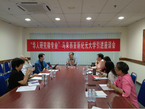 2019年1月29日,受马来西亚新纪元大学学院邀请,本研究所游国龙教授与王冠玺教授在新纪元大学学院G楼会议室进行引进华人研究微专业座谈会,马来西亚新纪元大学学院莫顺宗校长、文平强副校长、注册处伍燕翎副教授、中文系郑诗傧助理教授、辅导与咨商心理学系郭富美助理教授、蔡苔芬助理教授出席了座谈会。